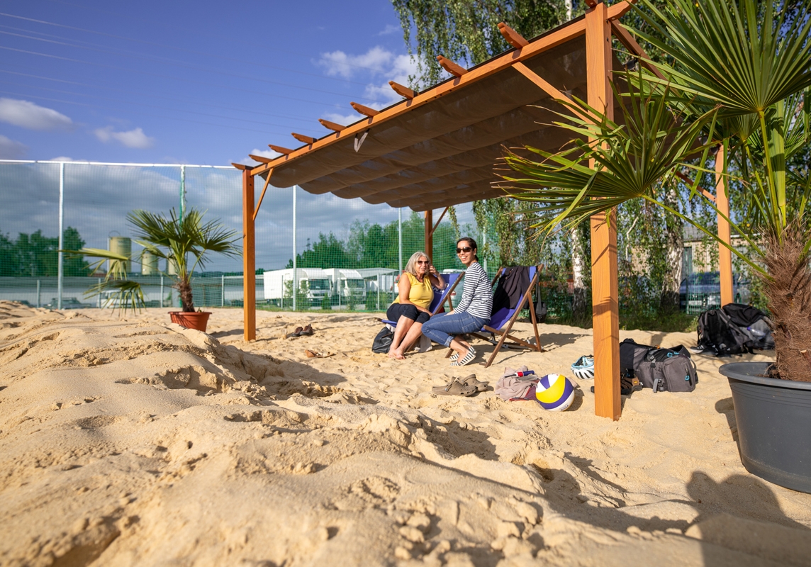 - Chill-Out-Bereich im Sand mit Strandstühlen