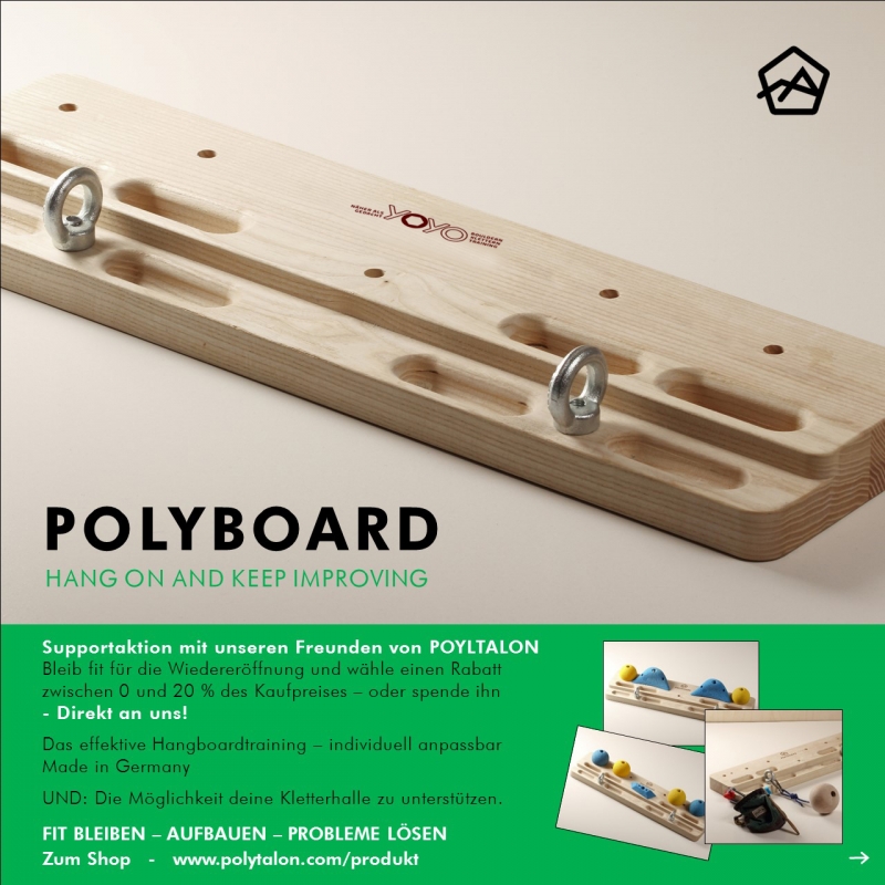 Wir hoffen, dass die Zeit schnell vorbei geht, sich die Situation wieder entspannt und wir die Halle für Euch ab Dezember wieder wie gewohnt öffnen können. Auch wir werden die Zeit nutzen und für Euch bis zur Wiedereröffnung einige Routen im Kletter- und Boulderbereich erneuern!